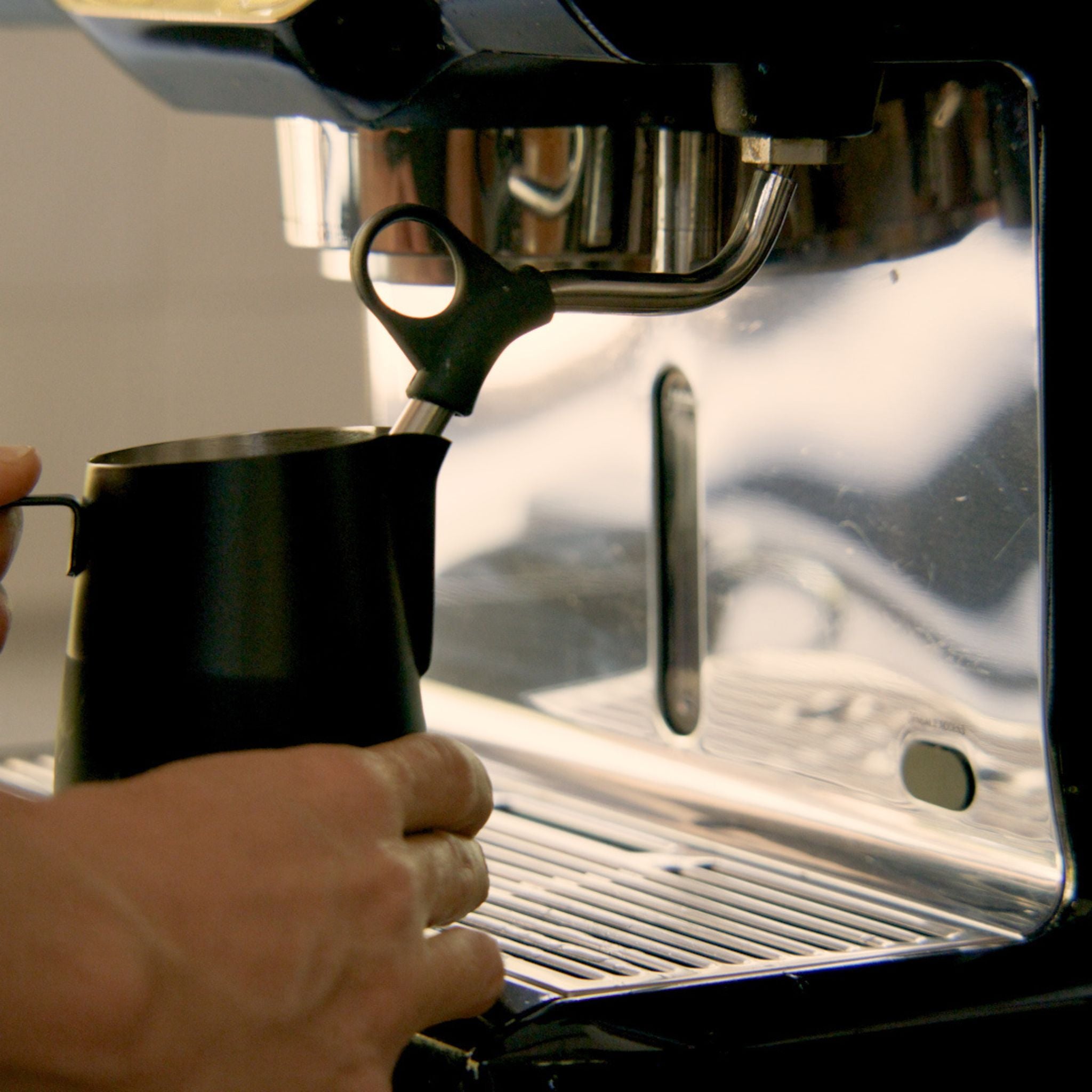 The tip of the jug has been designed to allow you to perfect your latte art. No mess, easy to grip and pour and the round stainless steel bottom makes it easy to wash.
